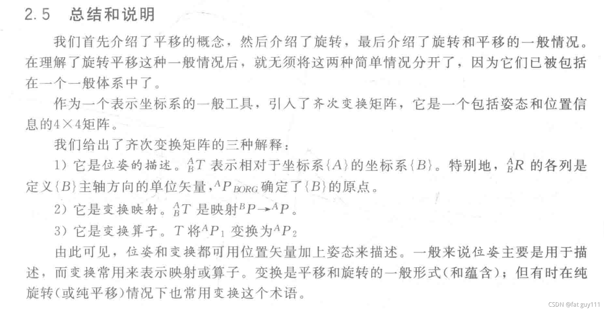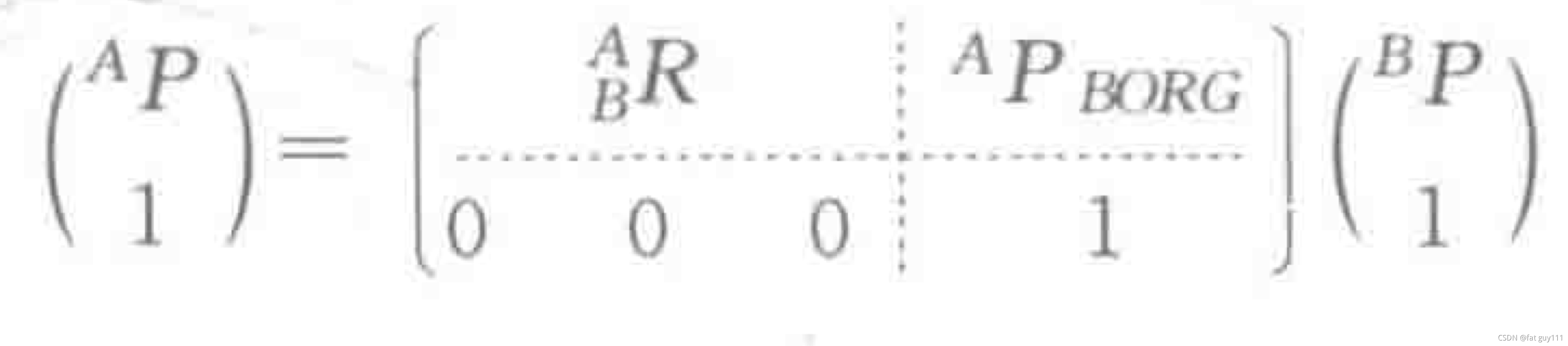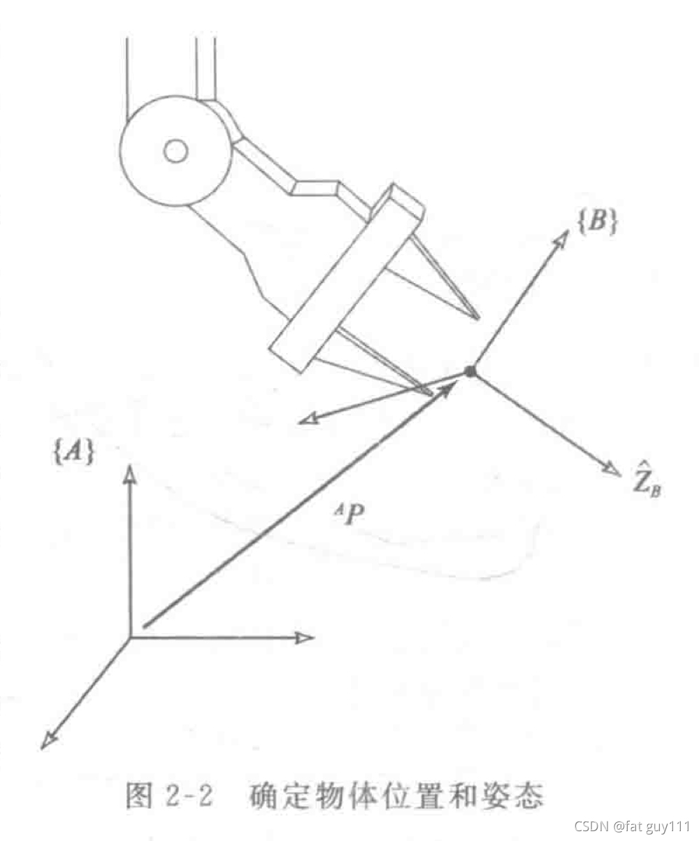 其中前者是旋转矩阵,后者是确定位姿{B}的原点相对于{A}的位置