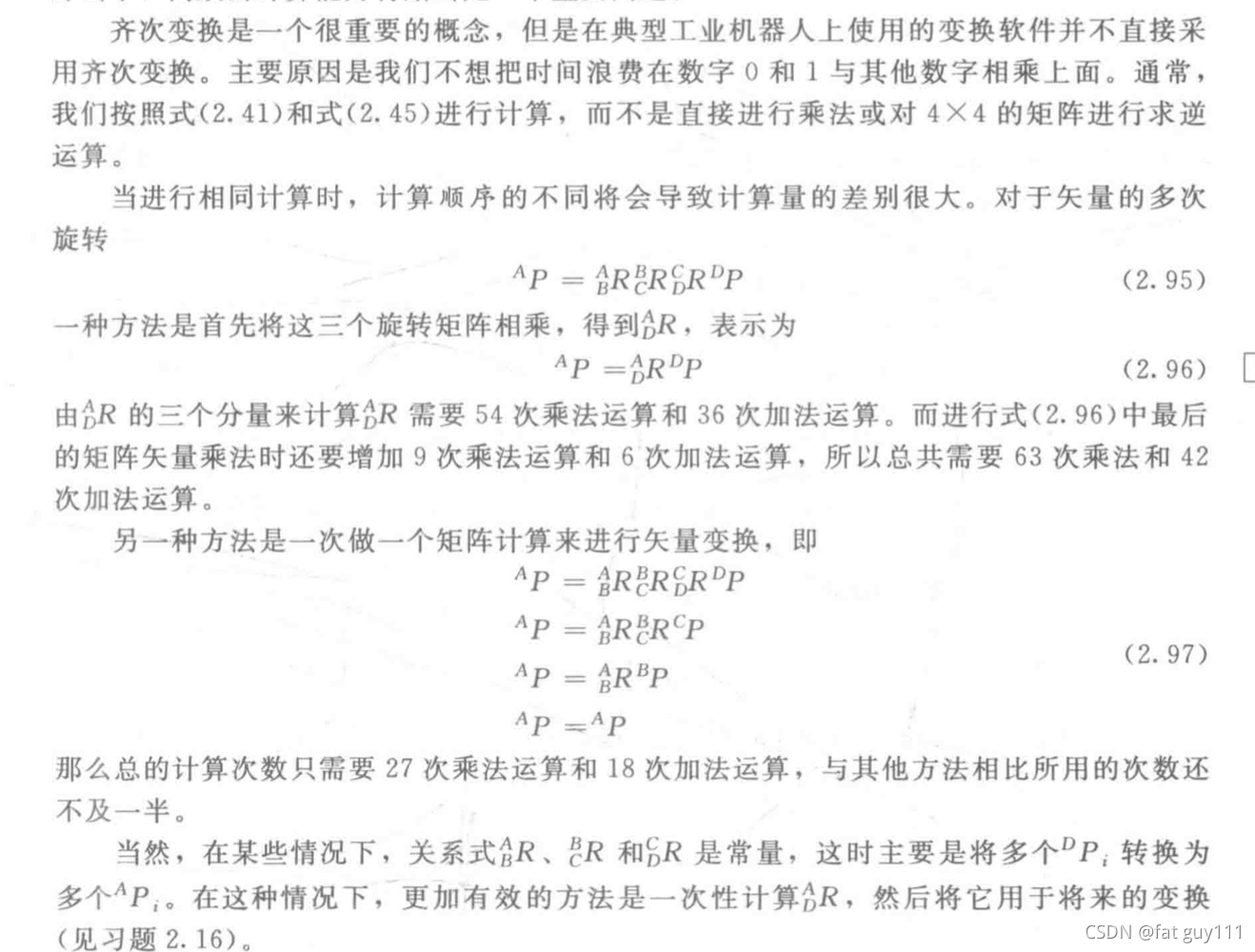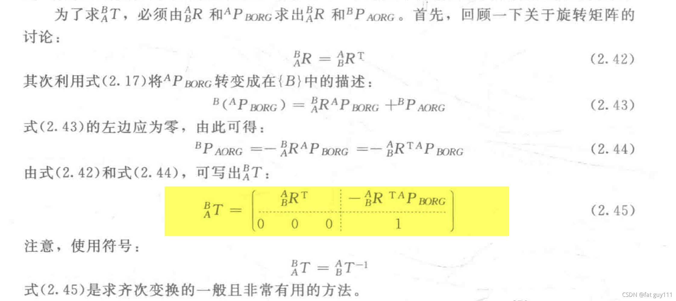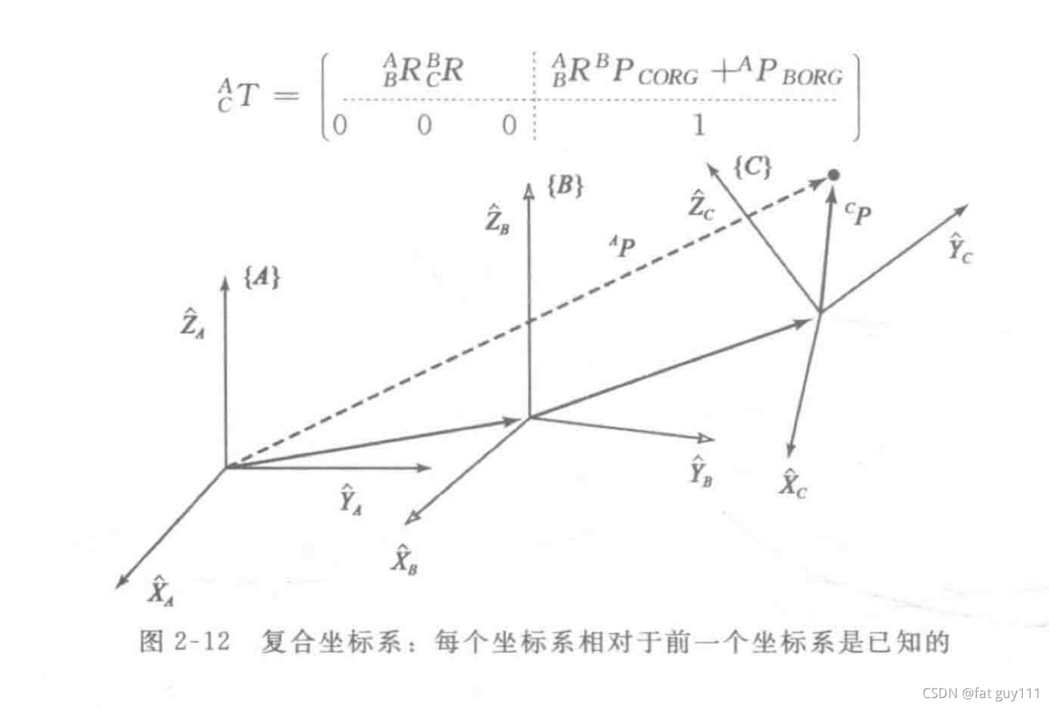 其中前者是旋转矩阵,后者是确定位姿{B}的原点相对于{A}的位置