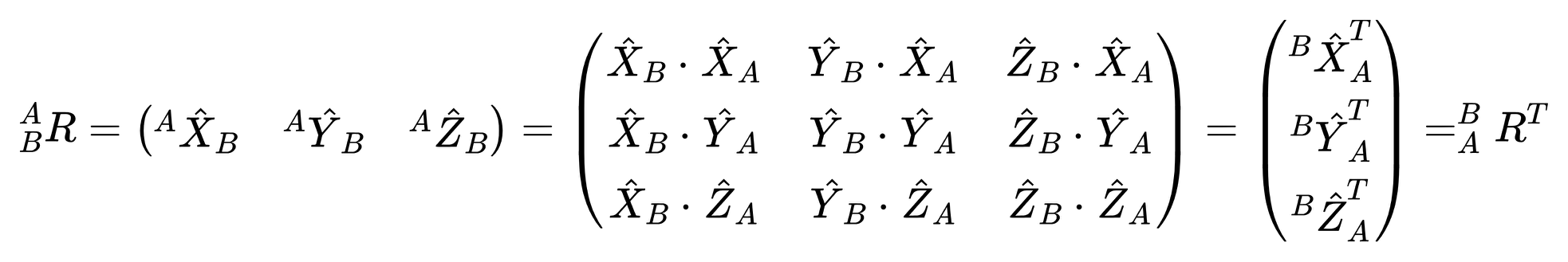 R是旋转矩阵,它表示{B}对于{A}的表达