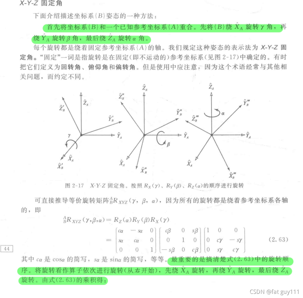 其他的描述方法(如Z——Y——X欧拉角等)大同小异都是用3个角度变量来描述旋转坐标系)