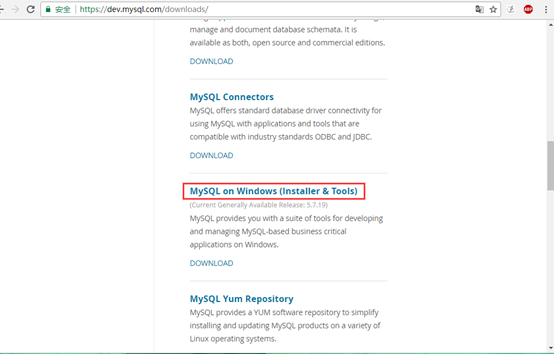 1.进入官网找到自己所需的安装包:https://dev.mysql.com/ ,路径:DOWNLOAD–>MYSQL Community Edition(GRL)–>MYSQL on Windows (Installer & Tool)