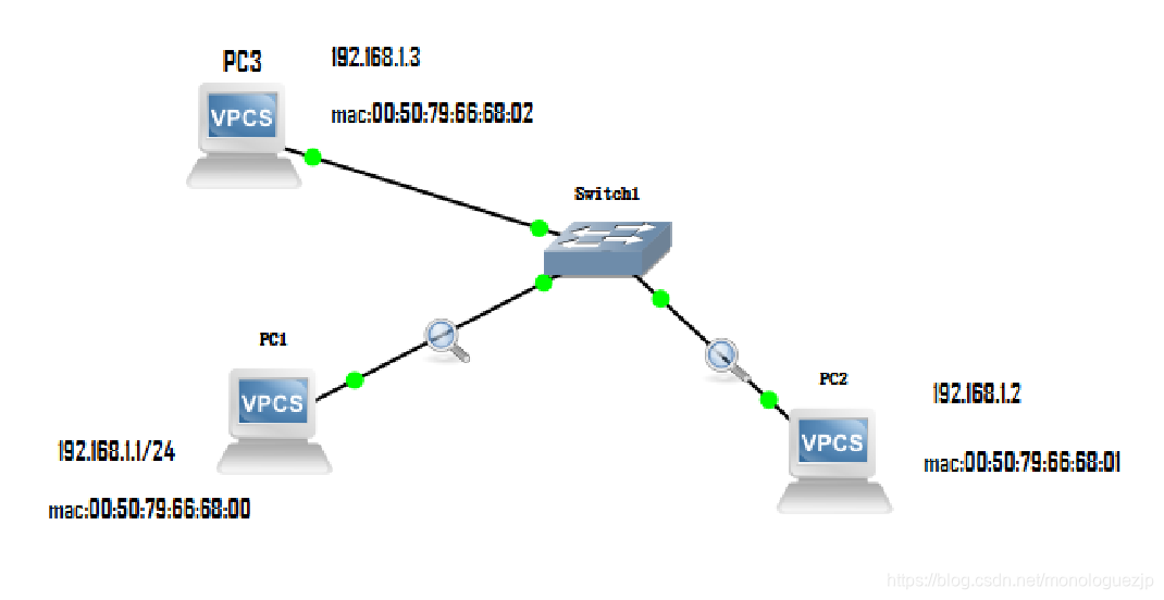 以主机PC1向PC3通信为例: