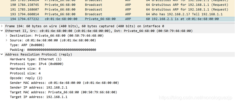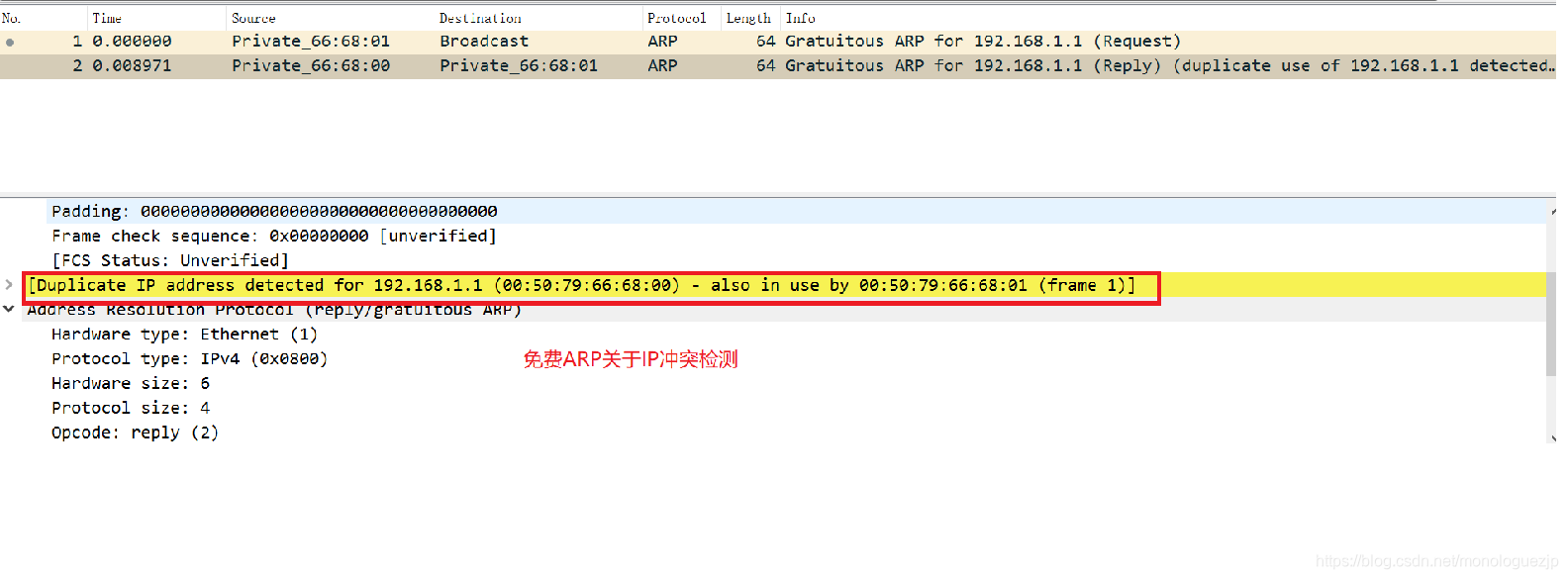 当出现地址冲突时,抓包如下: