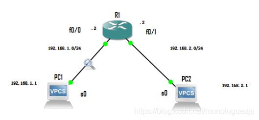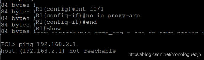 只需要将主机PC1的IP地址改为192.168.1.1/16,再ping一次,实验成功。同时我们注意到,这里返回的是路由器R1 F0/0接口的mac地址。