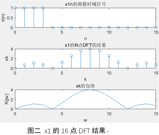 如图所示是对X1n的16点DFT,由于X1n只有4个数据点,相当于在离散时域信号后面补了12个0之后做的16点DFT。