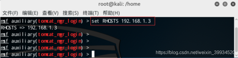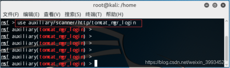 ”, 启用漏洞利用模块, 提示符就会提示进入到该路径下。(该模块用来暴力破解)