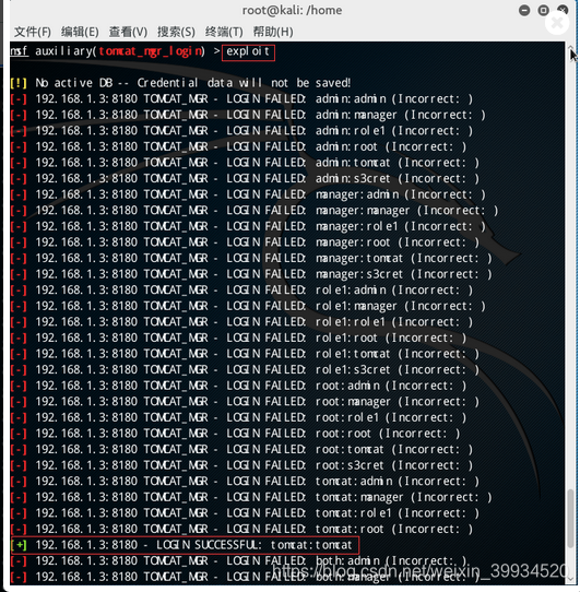 1) 利用枚举的方法破解Tomcat的弱口令。