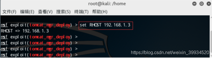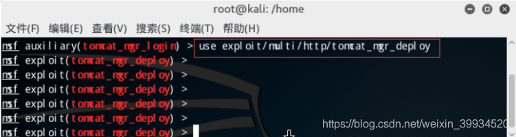”, 启用漏洞利用模块, 提示符就会提示进入到该路径下。(该模块用来渗透)