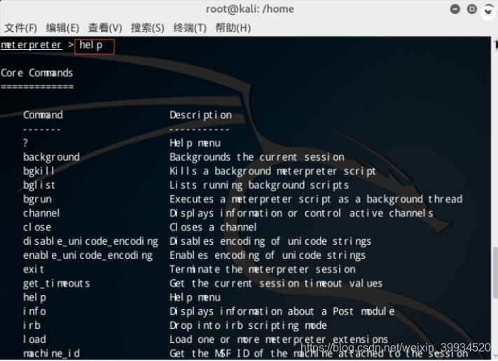1.15 在终端下输入”help” ,查看可以使用的命令。