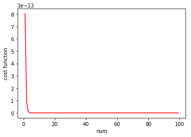 plt.plot(X,Y,'r-') #绘制损失函数随迭代次数num的变化图像