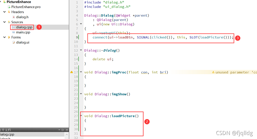 ⑥ loadBtn pushButton 载入图片
