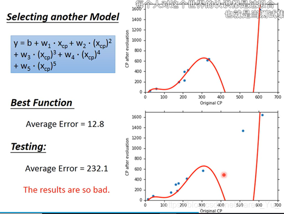 但是在testing data上并没有那么好–>复杂的模型并不一定拟合就更好