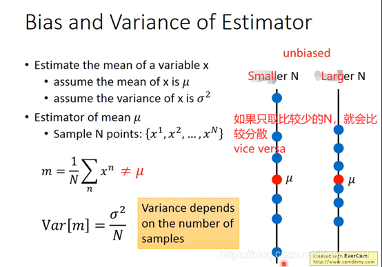 如果是简单model,variance就比较小,如果是比较复杂的model,散布就很开