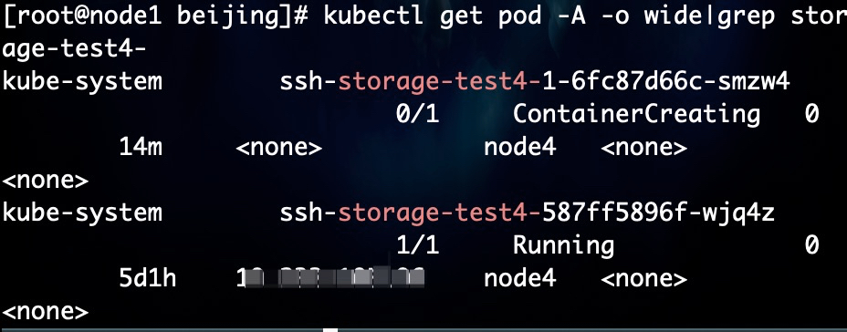 kubectl get pod -A -o wide|grep storage-test4- 再次查看pod状态