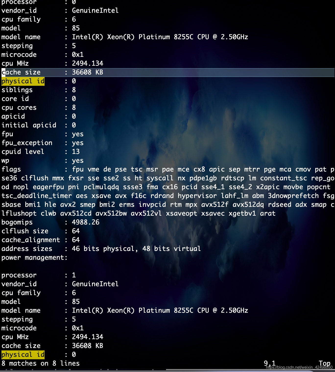 有多少physical id 就有多少个cpu,我们的服务器是8个