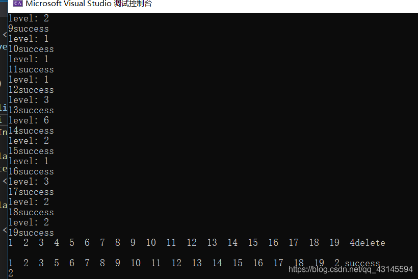for (int i = 0; i < level; ++i) { //先将newnode与前驱节点的下一节点进行连接,然后将前驱节点与newnode进行相连,其实与链表的插入是一样的