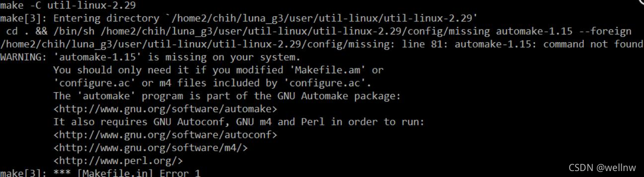 Some user space application needs the automake 1.15 version. If you do not have automake in