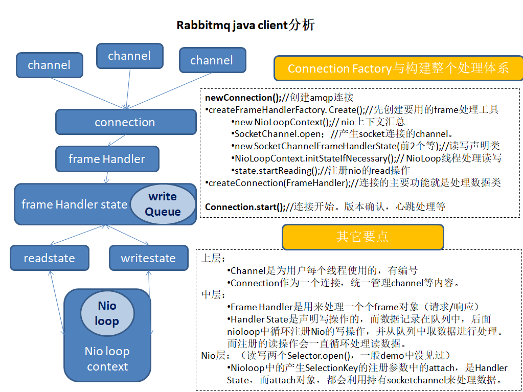 总的来说,rabbitmq-client源码还有很多特点,比如使用nio或bio,使用ssl或者非ssl,使用nio的读写分开的selector。这些处理都很有实站参考价值。