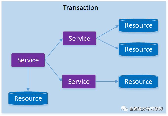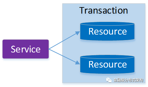 架构服务化以后,事务的概念延伸到了服务中。倘若将一个单一的服务操作作为一个事务,那么整个服务操作只能涉及一个单一的数据库资源: