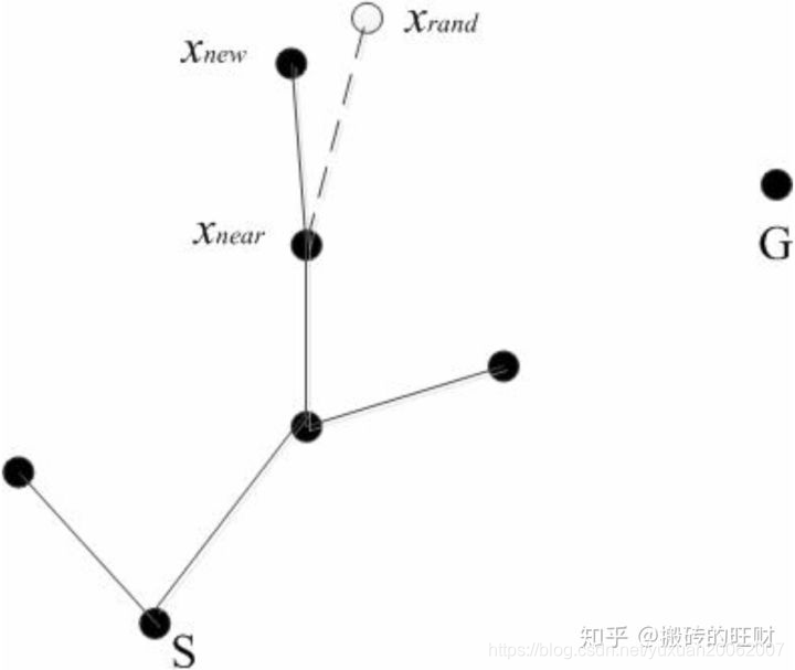 添加到快速随机搜索树T中。按照这样得到方法不断产生新状态,直到到达目标状态G。完成搜索树构建后,从目标点开始,逐次找到父节点直到到达初始状态,即搜索树的根节点。