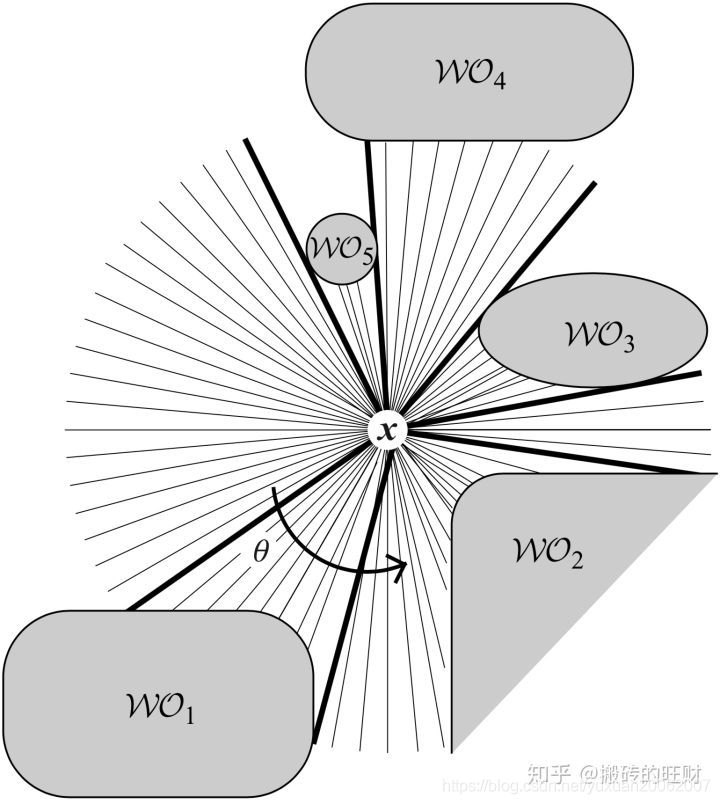 与障碍物的不连续性相关;请注意,这里的射线与障碍物相切。 点