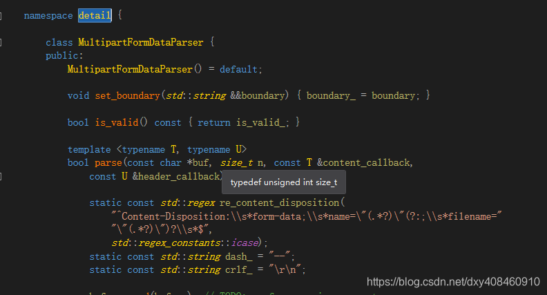你根据提示查找错误类型,发现 MultipartFormDataParser::parse是在detail命令空间中定义的。这个时候是不是很抓狂。