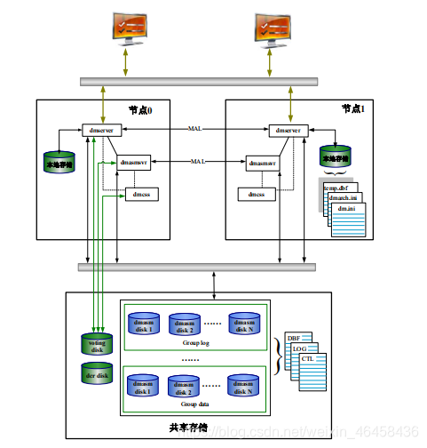 是一个单数据库、多实例的集群系统,数据库部署在共享存储上,供所有节点访问,具有高可用性、高性能、负载均衡等特性。DM DSC集群可以自动处理节点故障及故障切换,不影响对外正常服务,保证系统的高可用性。