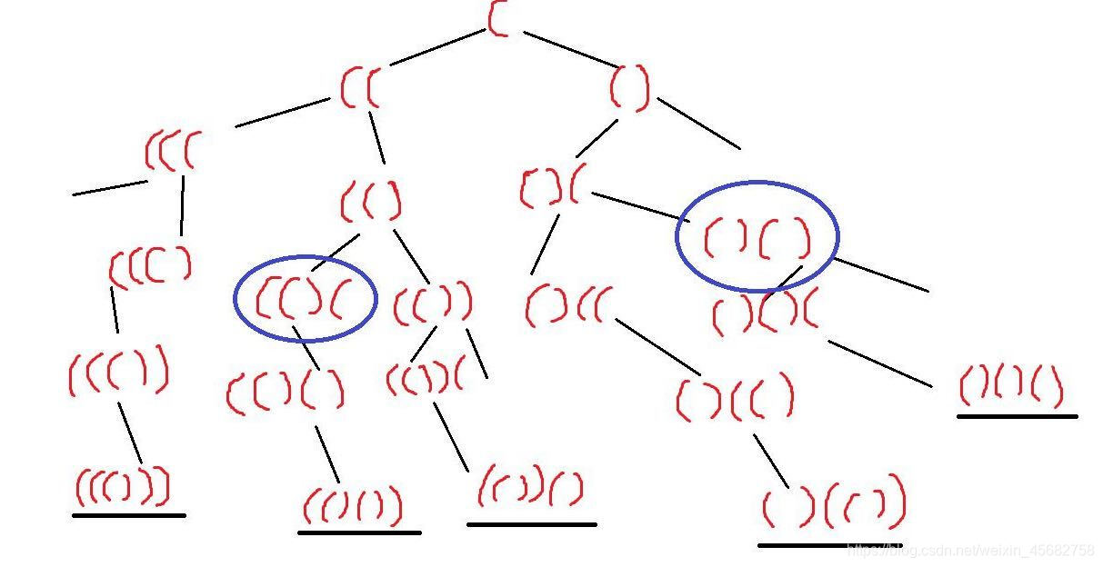 输出:["((()))", "(()())", "(())()", "()(())", "()()()"]