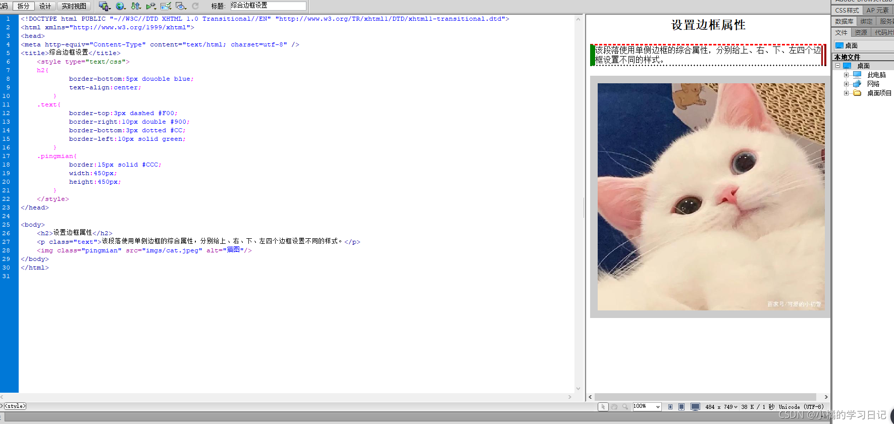 | 边框综合设置 | border:四边宽度 四边样式 四边颜色 |