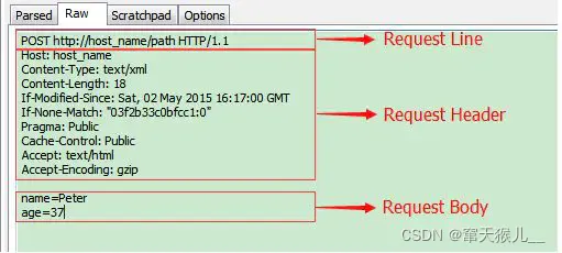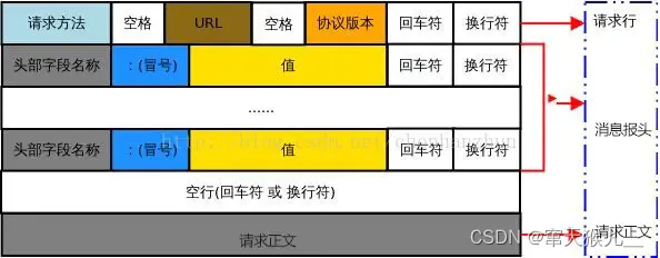 从客户端到服务器端的请求消息,信息由4部分组成请求行、消息报头、空行、请求正文