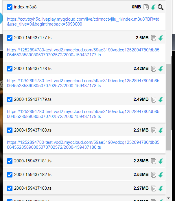 从这个列表中,我们可以看出这些ts文件是M3U8列表中的子文件,浏览器根据M3U8列表的指向来寻找这个位置,然后进行播放,这样就可以缩小一个很大的视频的内存,让他缩小到只有几MB