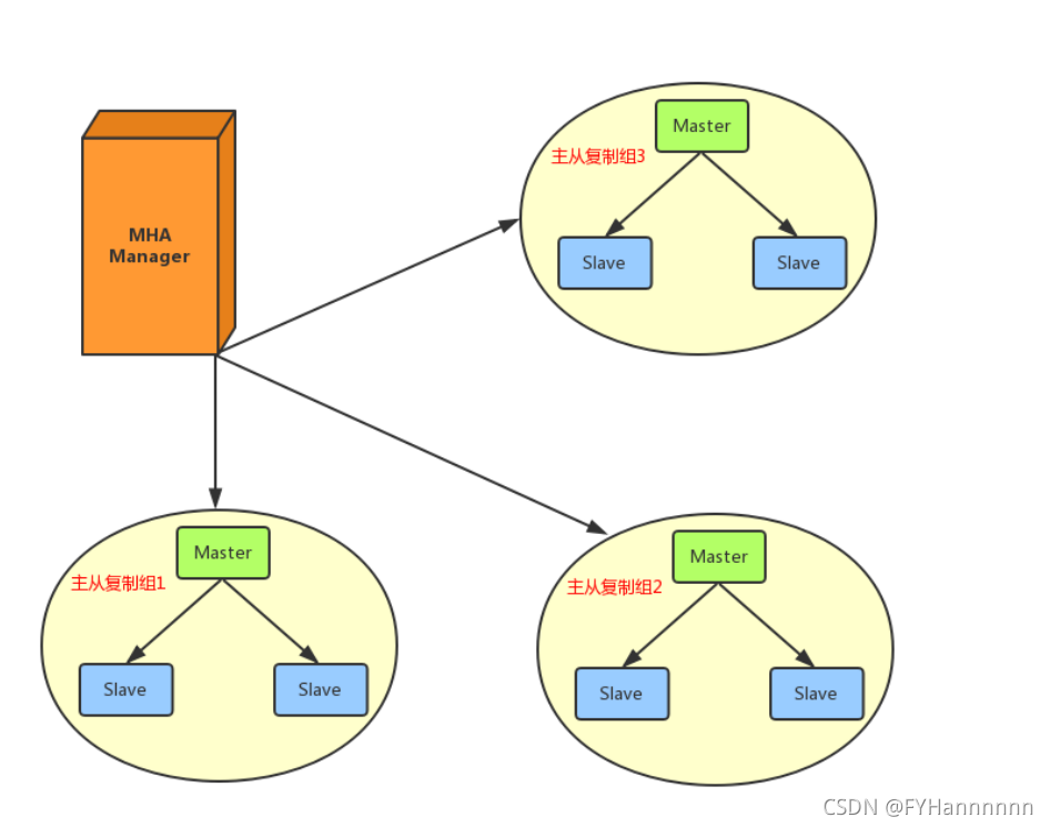 - MHA Manager可以单独部署在一台独立的机器上管理多个master-slave集群,也可以部署在一台 slave节点上。负责检测master是否宕机、控制故障转移、检查MySQL复制状况等。
