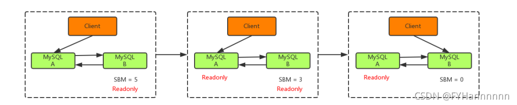 - 判断从库B的Seconds_Behind_Master值,当小于某个值才继续下一步