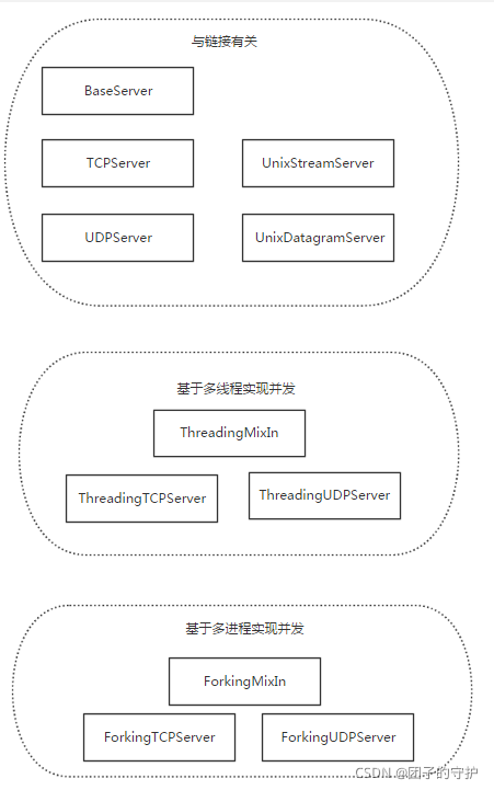 一、首先在socketserver模块中分两大类:
