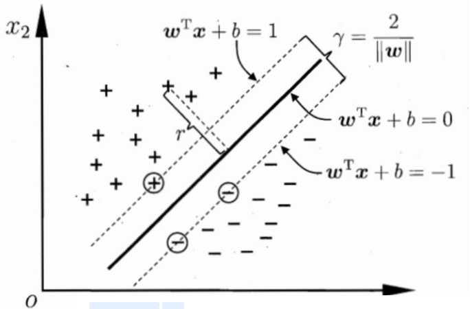 (支持向量平面:超平面平移到两个类别的支持向量,得到的两条直线,图像里的w^T*x+b=±1两条直线,没有找到这两个平面的名称,就先这样叫吧)