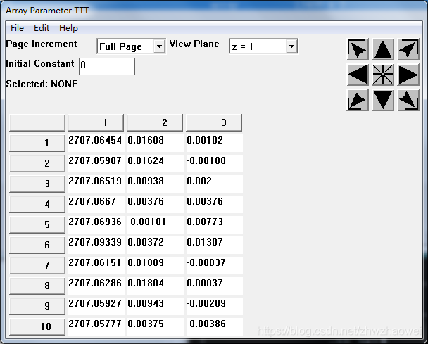 之后就可以在ANSYS中菜单Parameters->Array Parameters->Define/Edit进行查看,这里我们导入的结果如下和上面的数据是对应的: