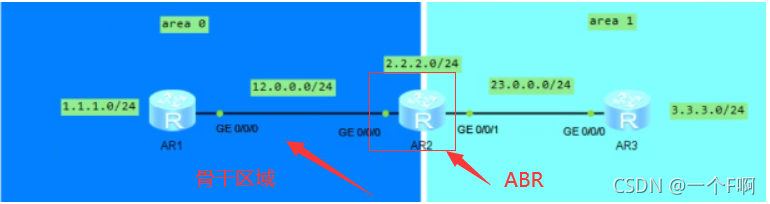 区域边界路由器(ABR)——同时属于两个区域,并且一个接口对应一个区域区域之间可以存在多个ABR