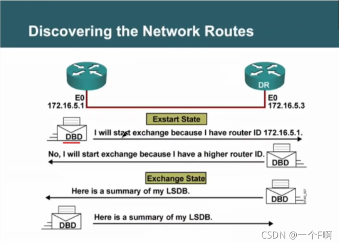 Exstart(预启动)状态:使用未携带数据的DBD包进行主从关系选举,RID大的为主可以先进入下一个状态