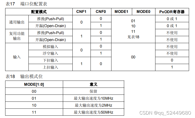 MODE1 MODE0不为00时,表示为输出模式 此时CNF1 CNF0为