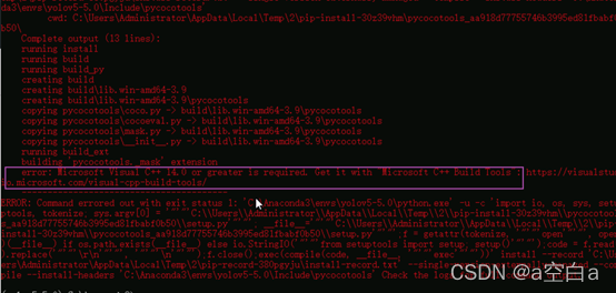 大体操作:安装pip install pycocotools -安装microsoft c++ build tools