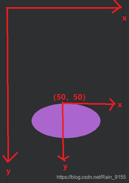 - 坐标轴以(0,0)为中心,X轴水平向右,Y轴水平向下