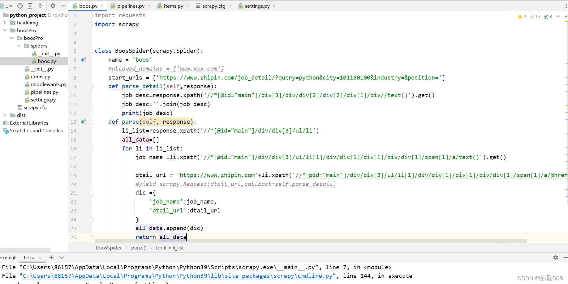 激活以后就可以,运行scrapy  crawl  爬虫源文件名称