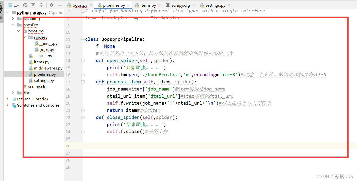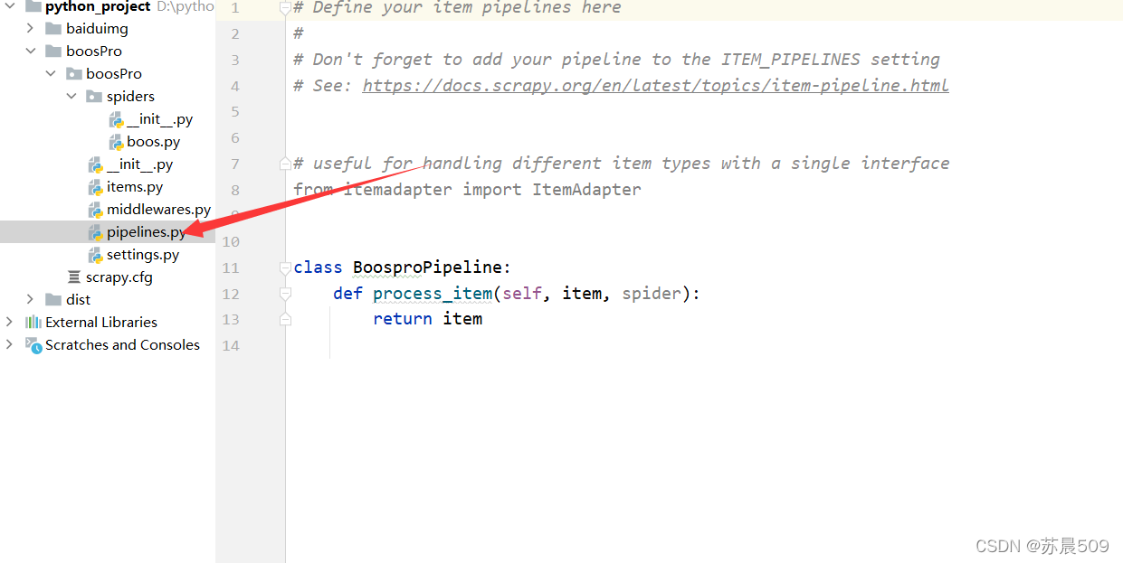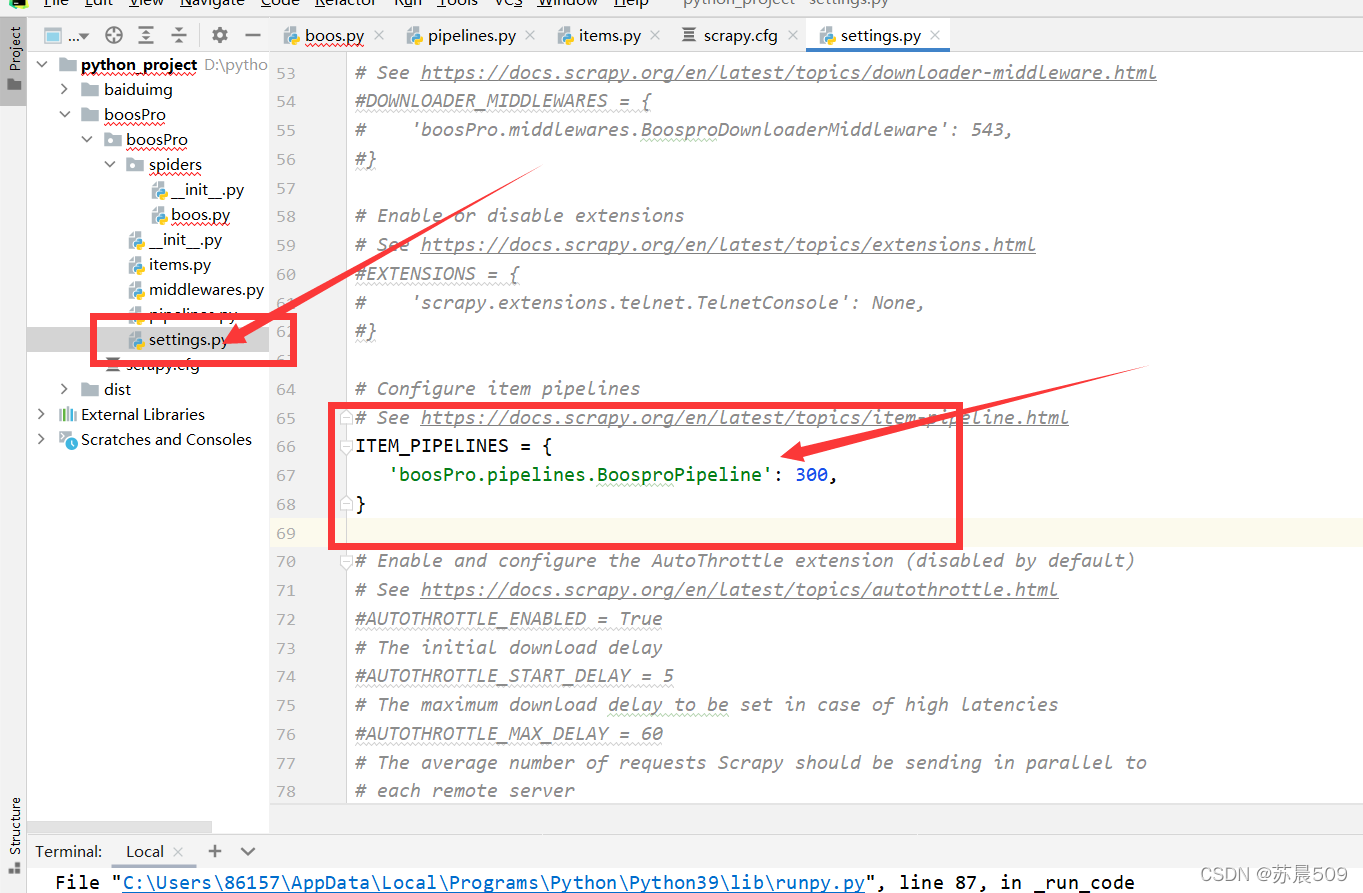 在配置文件中开启管道,激活一下item_piprlines,后面的300优先数字,数字越小优先级就越高