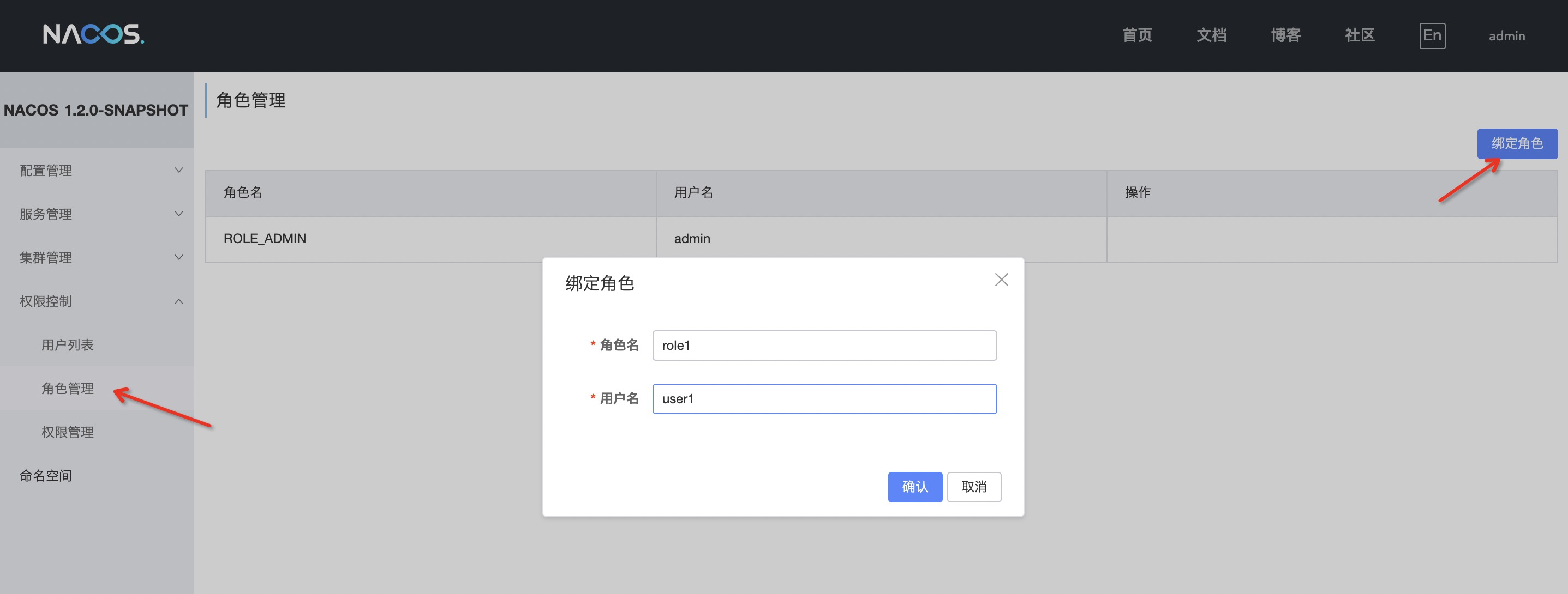 - 创建角色/绑定用户到角色:POST /nacos/v1/auth/roles?role=xx&username=yy