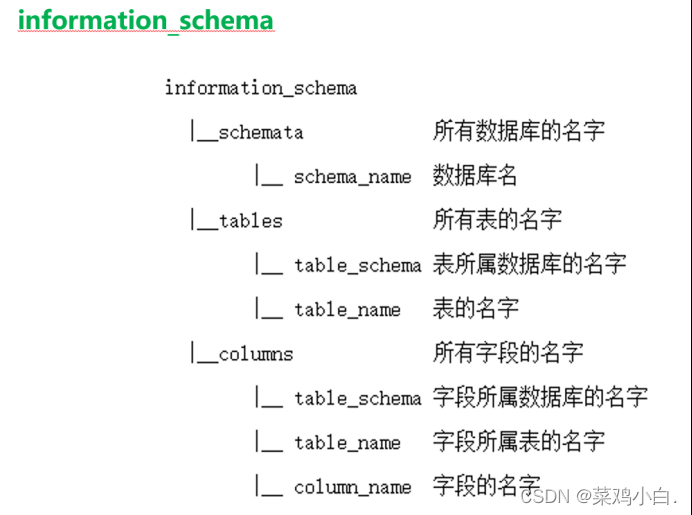 | substr() | 返回一个字符串的一部分 | select substr(‘abcde’,1,1) |