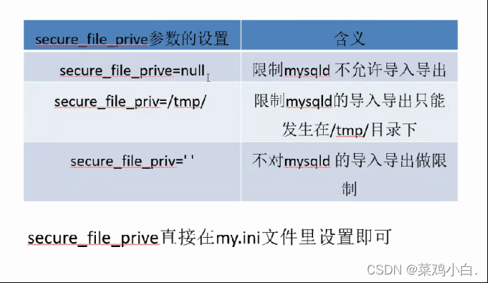 | into outfile | 写入文件到服务器 | select ‘xxxx’ into outfile ‘/tmp/a.txt’ |