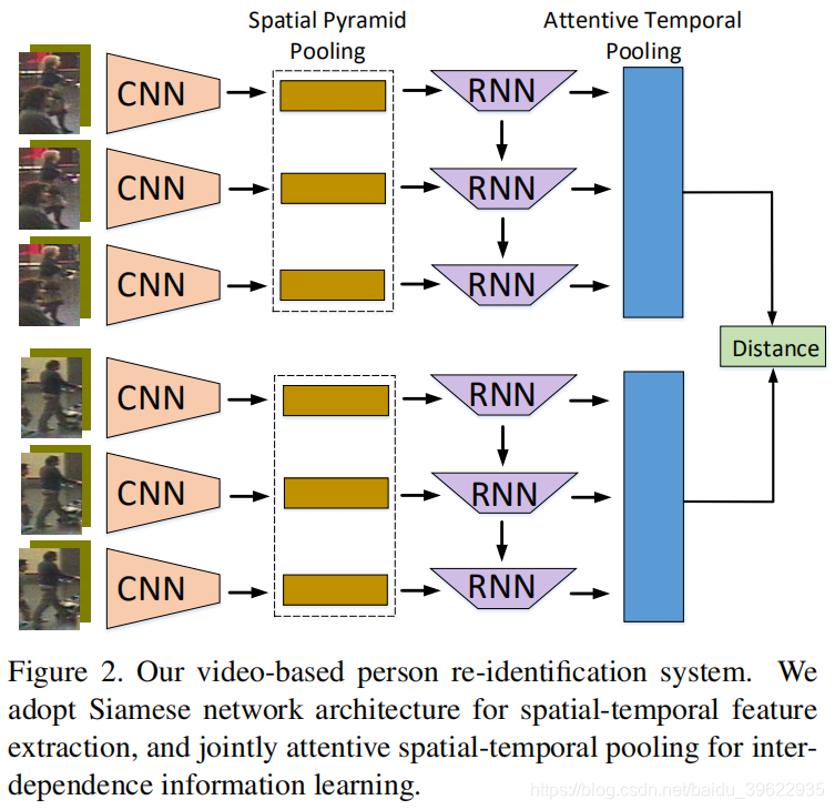 这是一篇华中科技大学和IBM人工智能研究中心在2017年ICCV上发表的文章。在这篇文章中,作者提出了一个新奇的联合空间和时域注意力池化网络(ASTPN)来解决视频行人重识别问题。他们提出的方法能够利用到输入视频对之间的相互依赖性,来计算得到各自的特征表示。他们网络中的空间池化层能够从每个视频帧中选择重要的区域,时域注意力池化能够在整个视频序列中选择包含判别信息的帧。这两个池化层都受到距离匹配信息的指导(即孪生网络进行验证任务的损失函数的指导)。作者在iLIDS-VID、PRID-2011、MARS三个数据集上进行了实验,结果显示他们提出的算法超过了state-of-the-art。作者还分析了空间、时域池化单独或联合使用时是怎样促进re-id performance的。