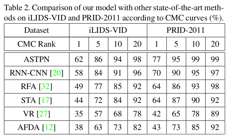 在iLIDS-VID和PRID上的实验结果以及与state-of-the-art的对比: