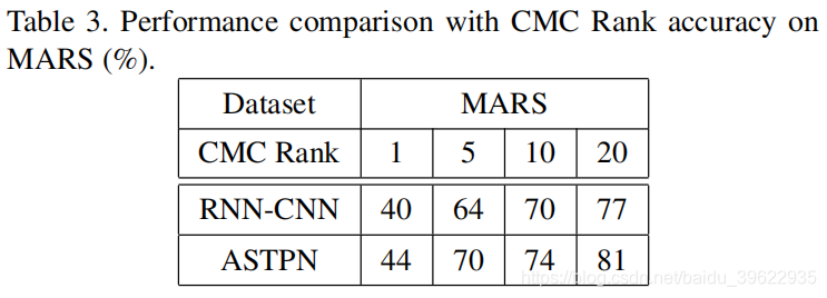 可以看到,表现相比于前两个数据集有不小的下降,作者解释是因为MARS数据集包含较大的背景噪声(可能也与作者只利用了2个摄像头下的数据有关)